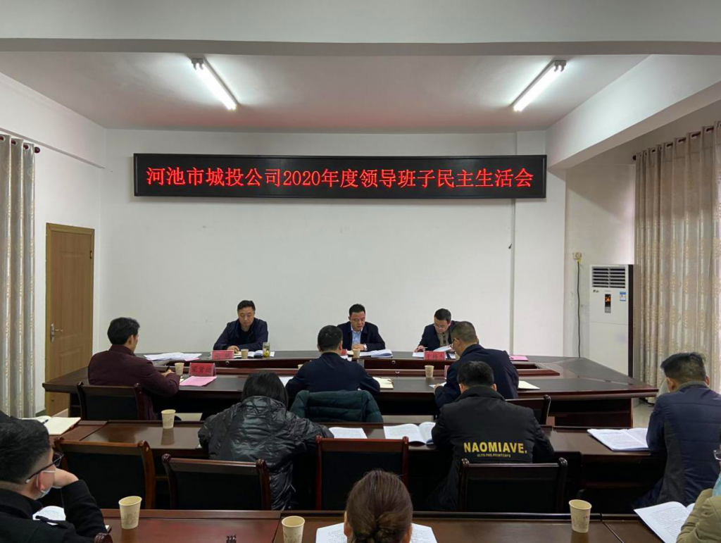 2021年2月9日下午,河池市城投公司召開2020年度領(lǐng)導(dǎo)班子民主生活會(huì)。公司黨委書記、董事長(zhǎng)韋哲智主持會(huì)議,市國資委黨委委員、副主任牙韓杰到會(huì)指導(dǎo)。