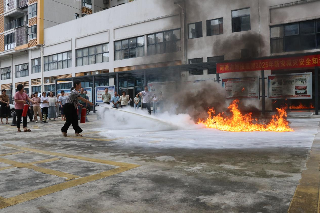 本次活動(dòng)邀請(qǐng)河池防控火中心教員進(jìn)行防災(zāi)減災(zāi)安全知識(shí)宣教和滅火演練指導(dǎo)。