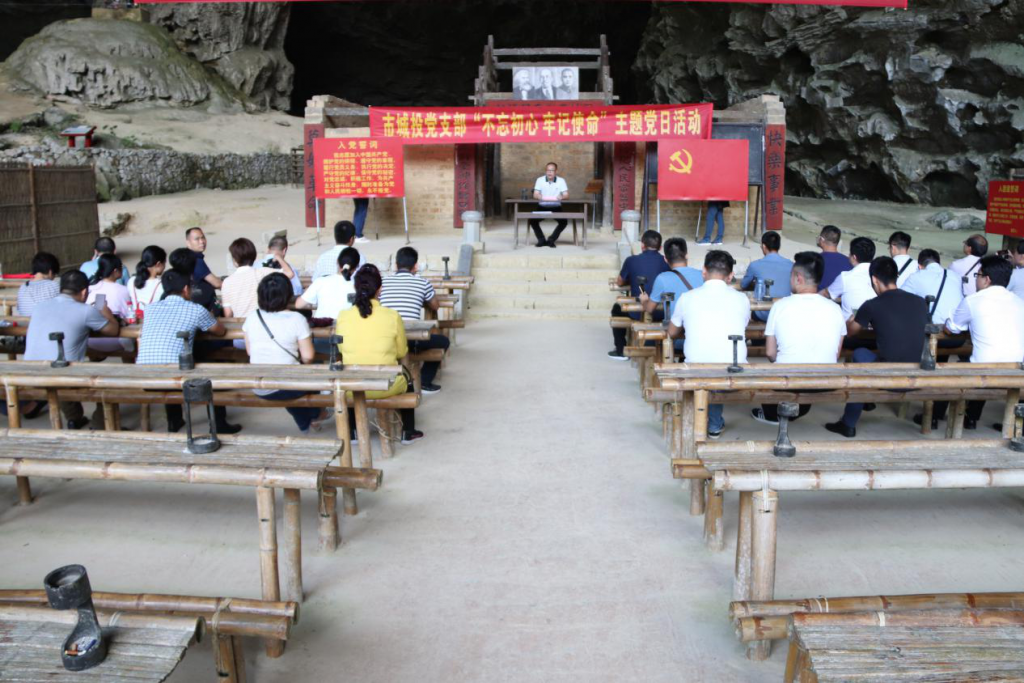 最后,在“廣西農民運動講習所舊址”——列寧巖,由石師副總經理給全體黨員上主題黨課,并帶領大家面向黨旗重溫入黨誓詞。石師副總經理強調,我們今天的幸福生活,是無數無產階級革命家付出了巨大的犧牲換來的,我們應倍加珍惜。作為新時代共產黨員,我們要薪火相傳,傳承紅色基因,繼承革命先烈大無畏的革命精神,始終牢記共產黨員的初心和使命,勇于擔當,樂于奉獻,以時不我待、只爭朝夕的進取精神,以追求卓越、爭創(chuàng)一流的干事激情,為建設美麗幸福新河池作出新的更大貢獻。麠潱